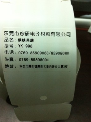 铁吊牌专注于为轮胎、电子、汽车、医药、钢铁、线缆等十几个行业提供各种不同需求的特殊标签应用方案,通过多年的不懈努力,积累了丰富的特殊标签应用经验和专业的应用技术,成为国内特种标签行业中的翘首。吊牌采用特殊的表面涂层处理,专门为热转印刷而设计
